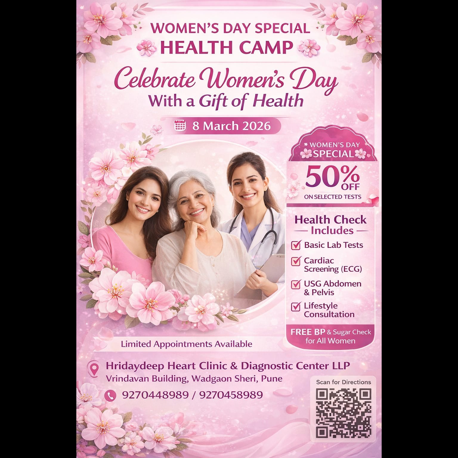 Women play a vital role in families and society, but often they neglect their own health. Through this camp,we aim to educate and encourage women to take care of their physical and mental health, adopt healthy lifestyle habits, and empower themselves for a better and healthier life.